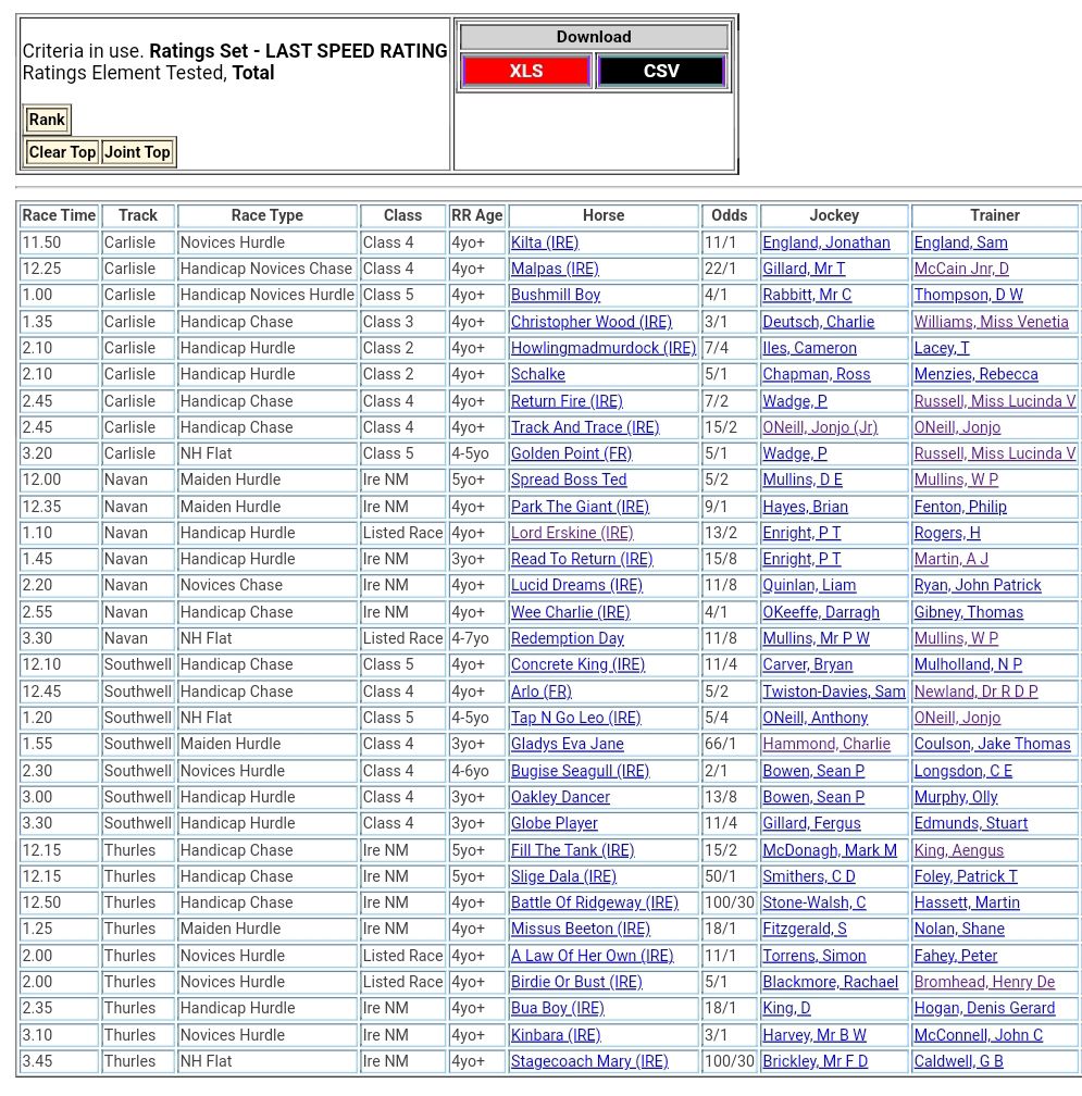 Top Speed Rated for today’s meetings⏱️⤵️