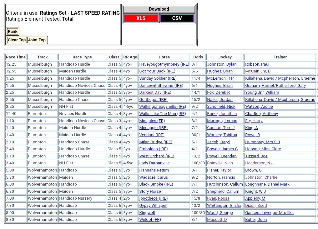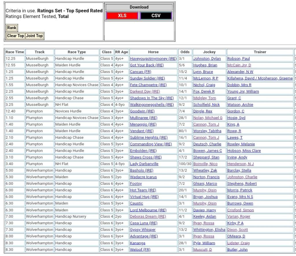 Top Speed Rated for today’s meetings ⏱️⤵️