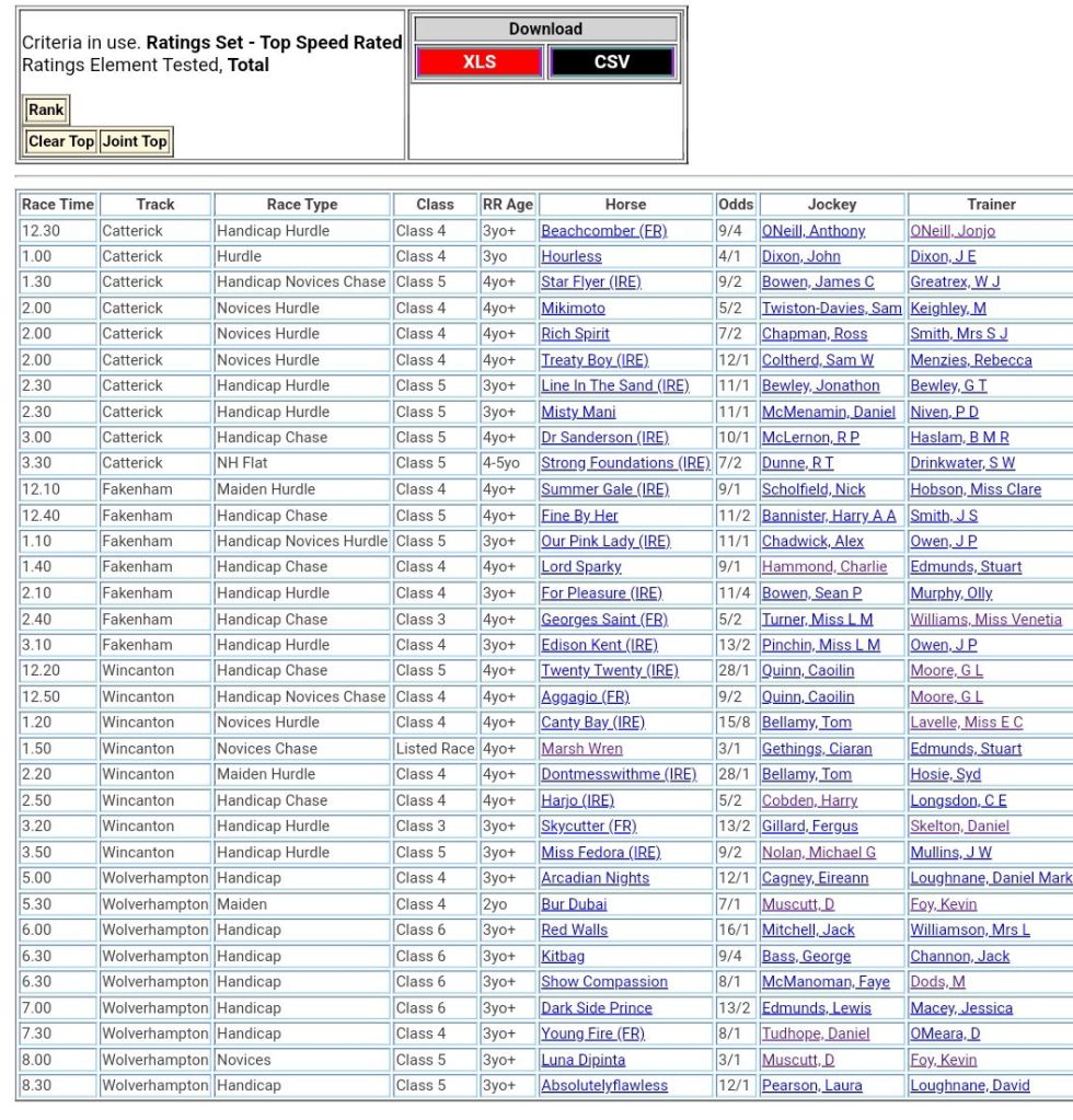 Top Speed Rated for today’s meetings ⏱️⤵️