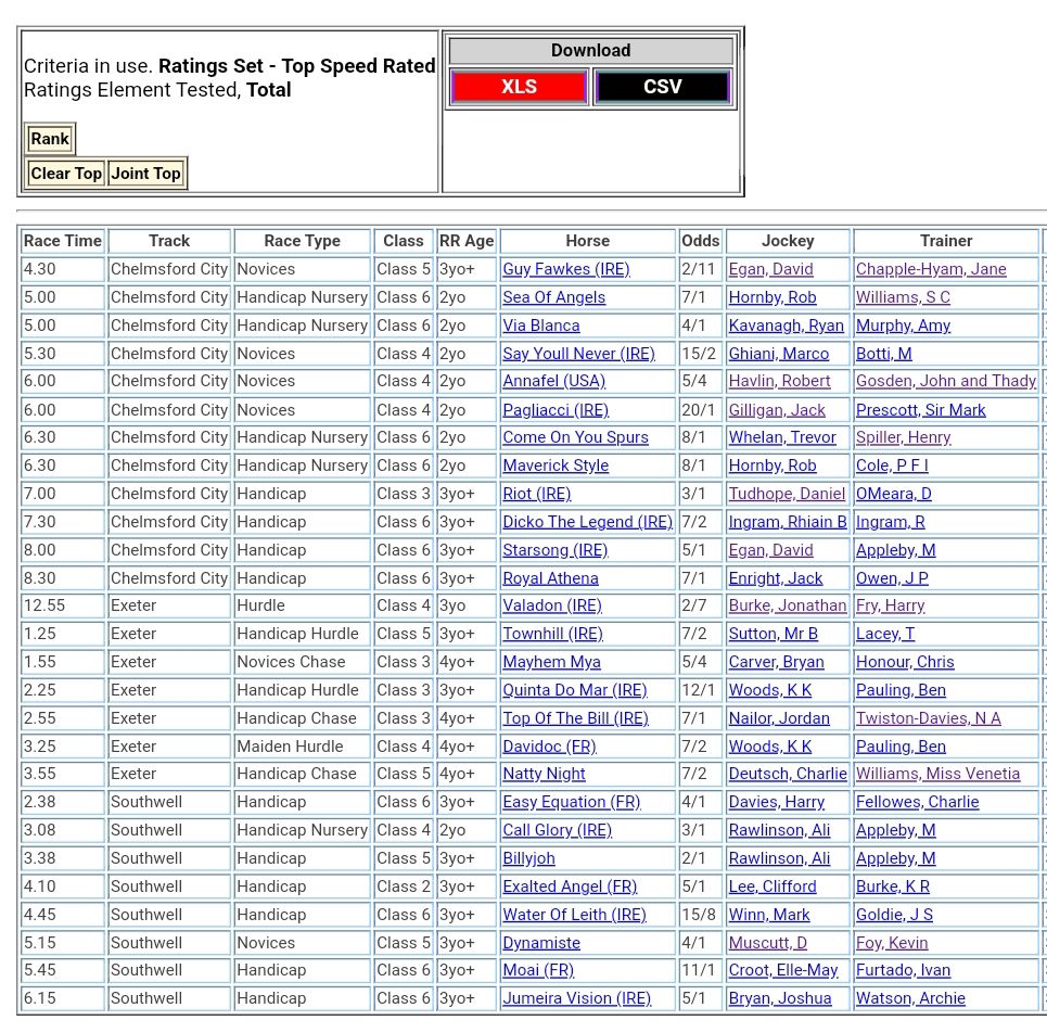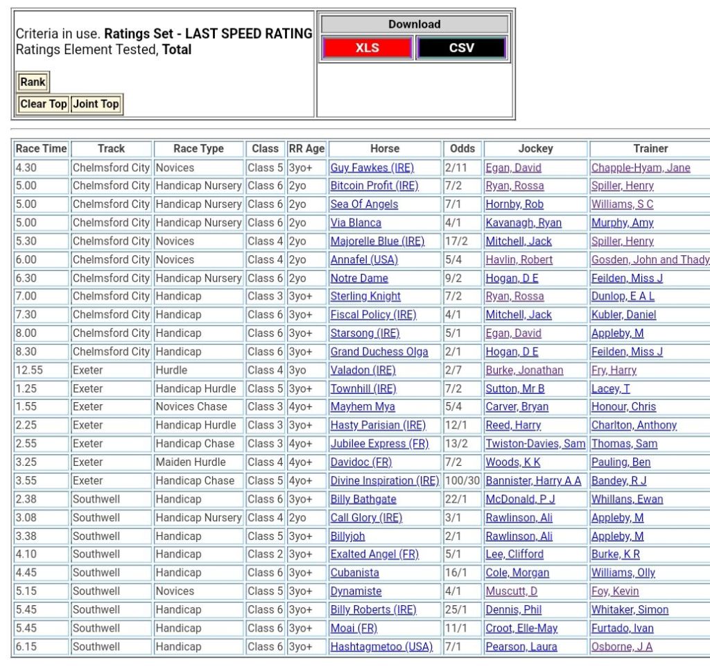 Top Speed Rated for today’s meetings ⏱️⤵️