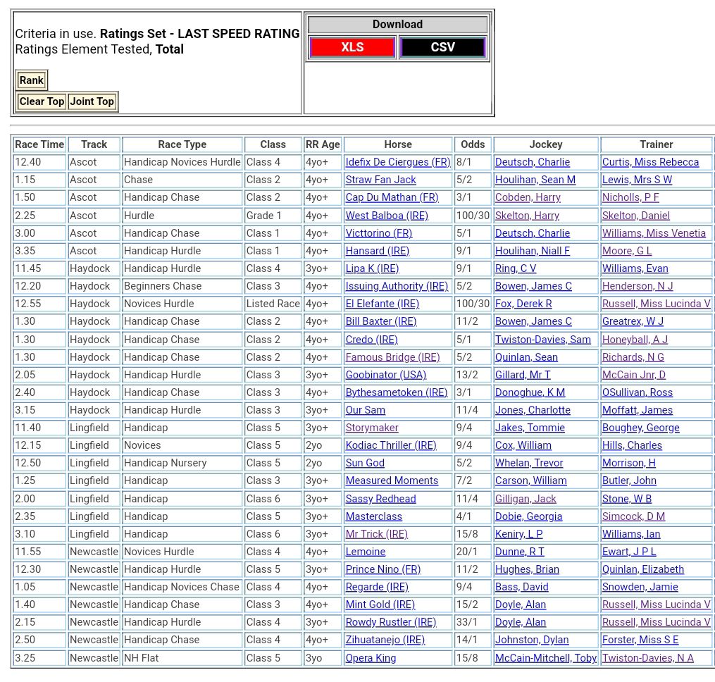 Top Speed Rated for today’s meetings ⏱️⤵️