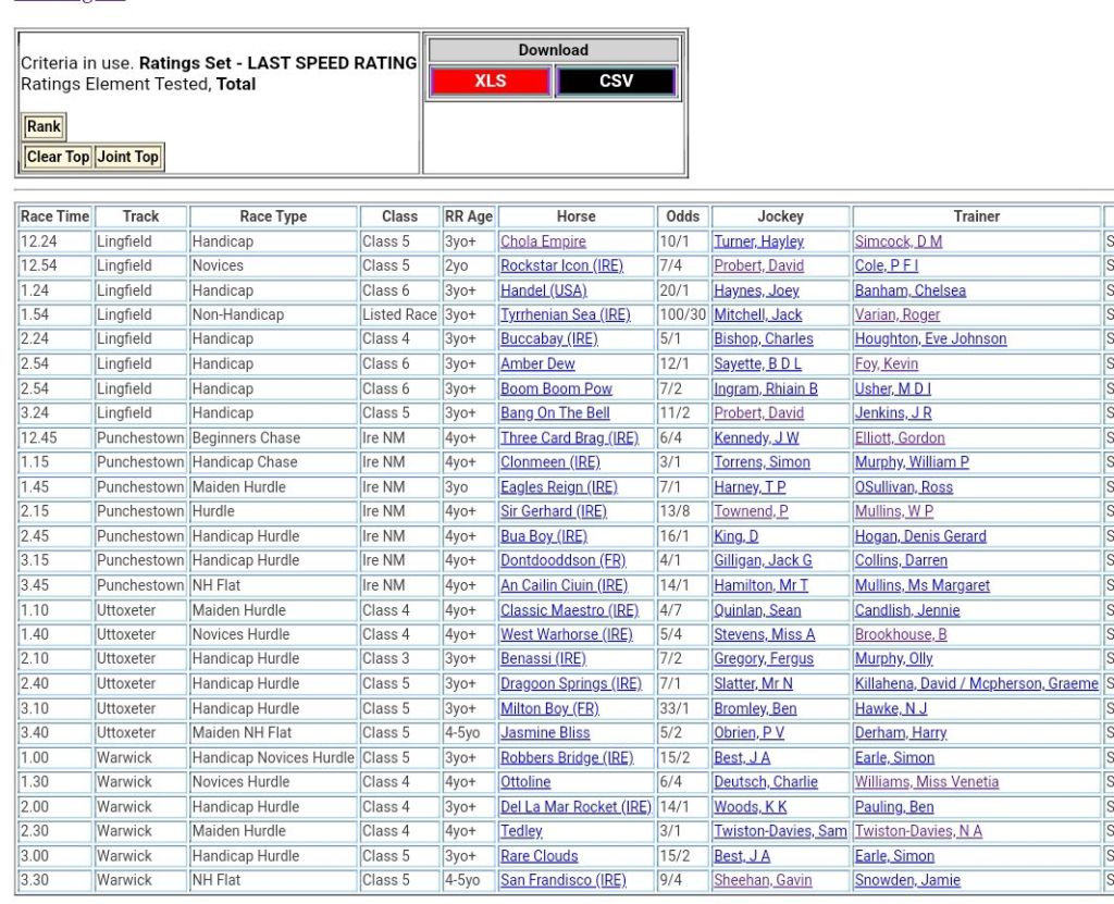 Top Speed Rated for Sunday’s meetings ⏱️⤵️