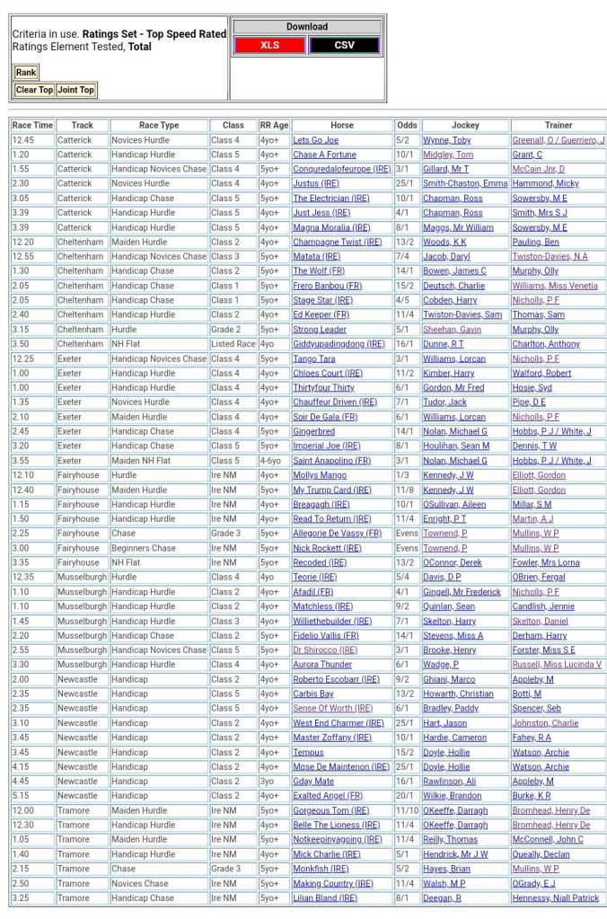 Top Speed Rated for Monday’s meetings ⏱️⤵️