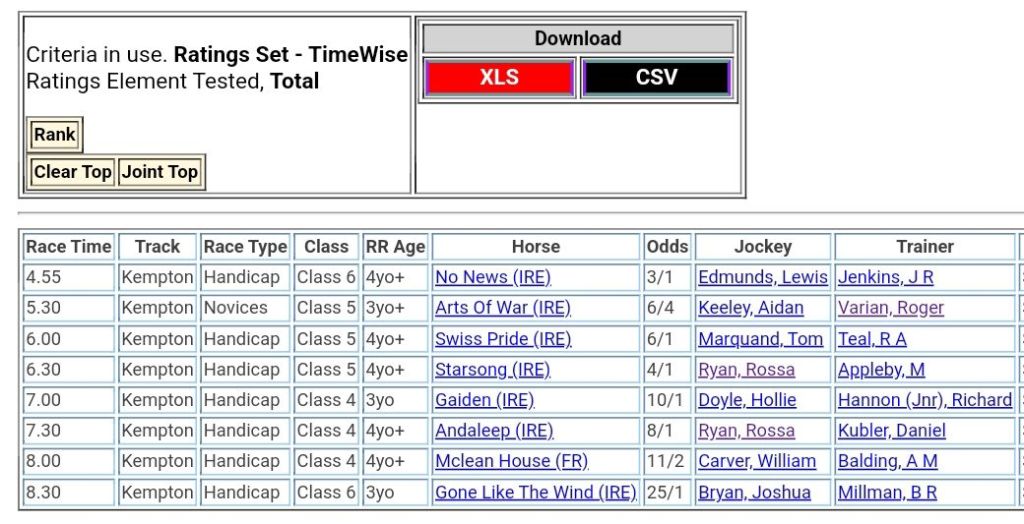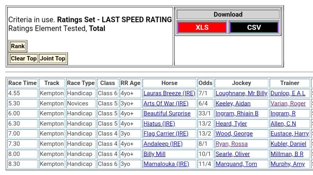 Top Speed Rated for Wednesday’s meeting ⏱️⤵️