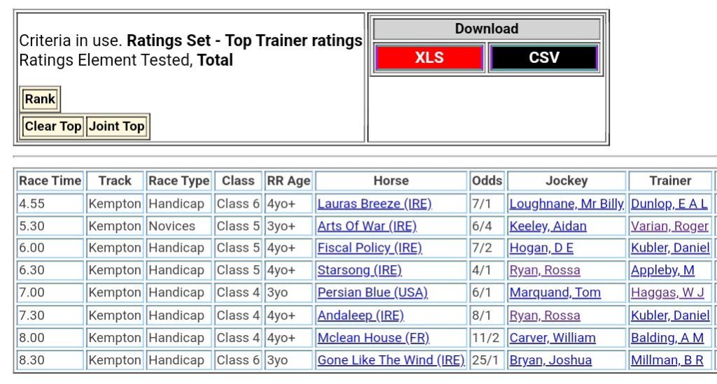 Top Ranked trainer for Wednesday’s races 💪⤵️