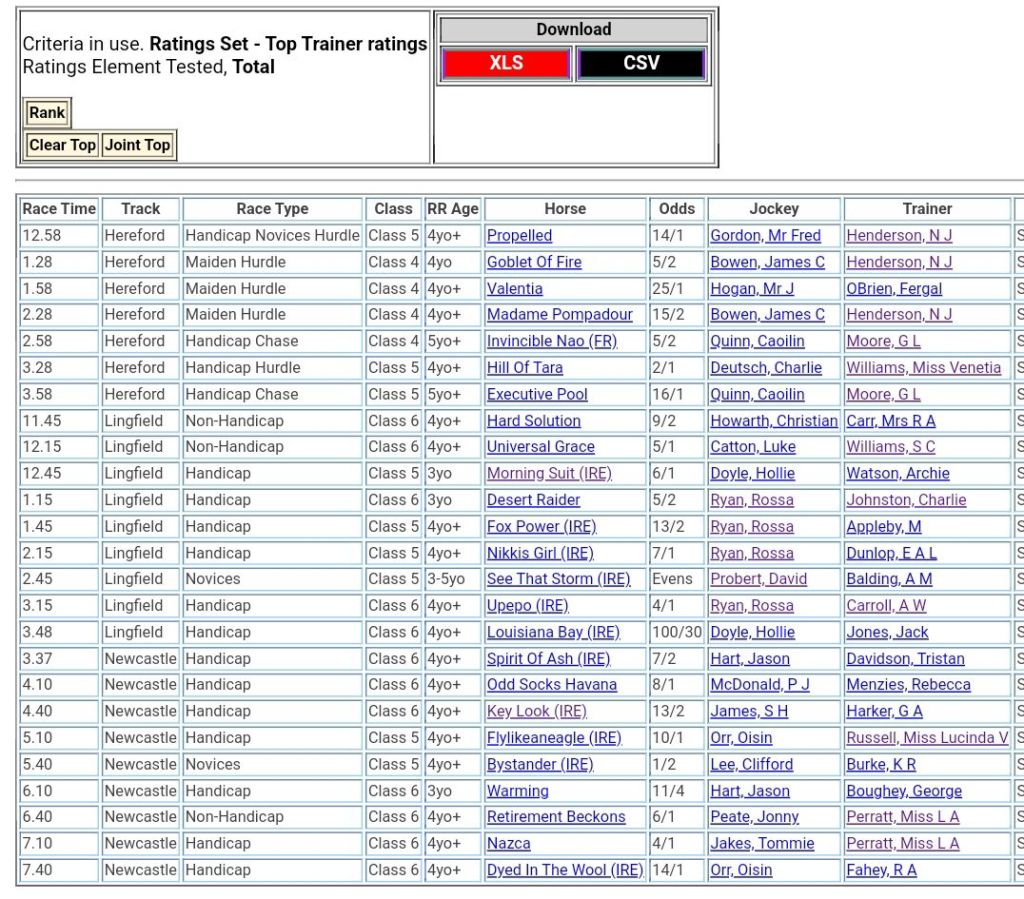 Top Ranked trainers for Thursdays races 💪⤵️