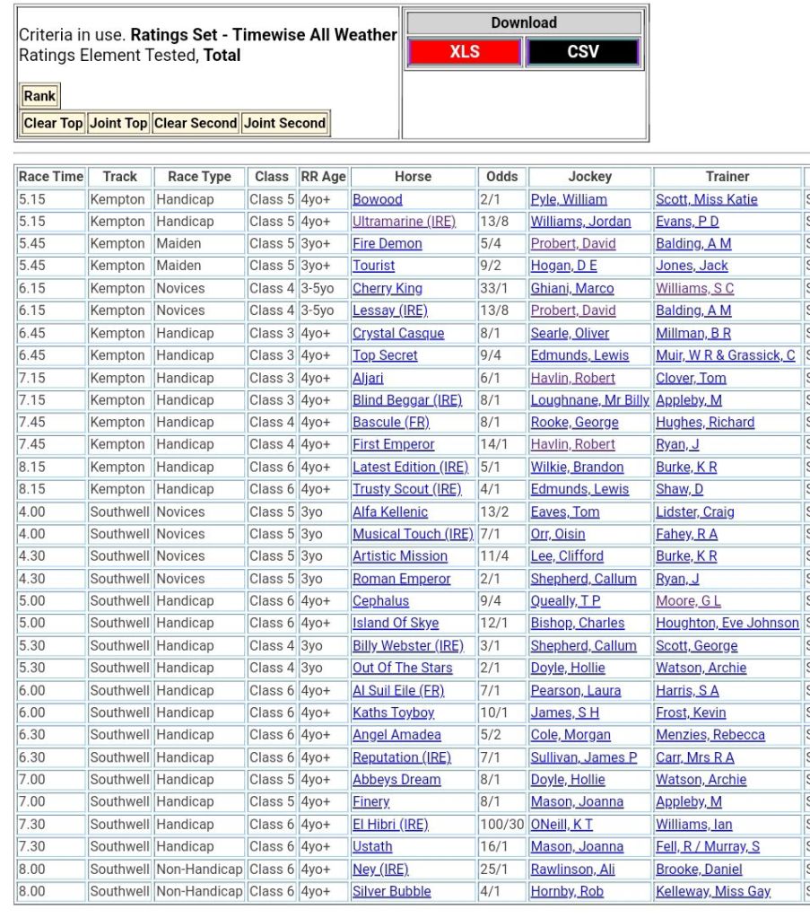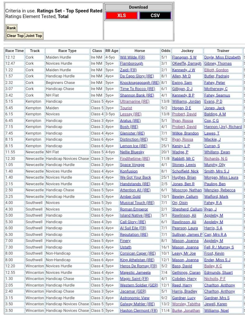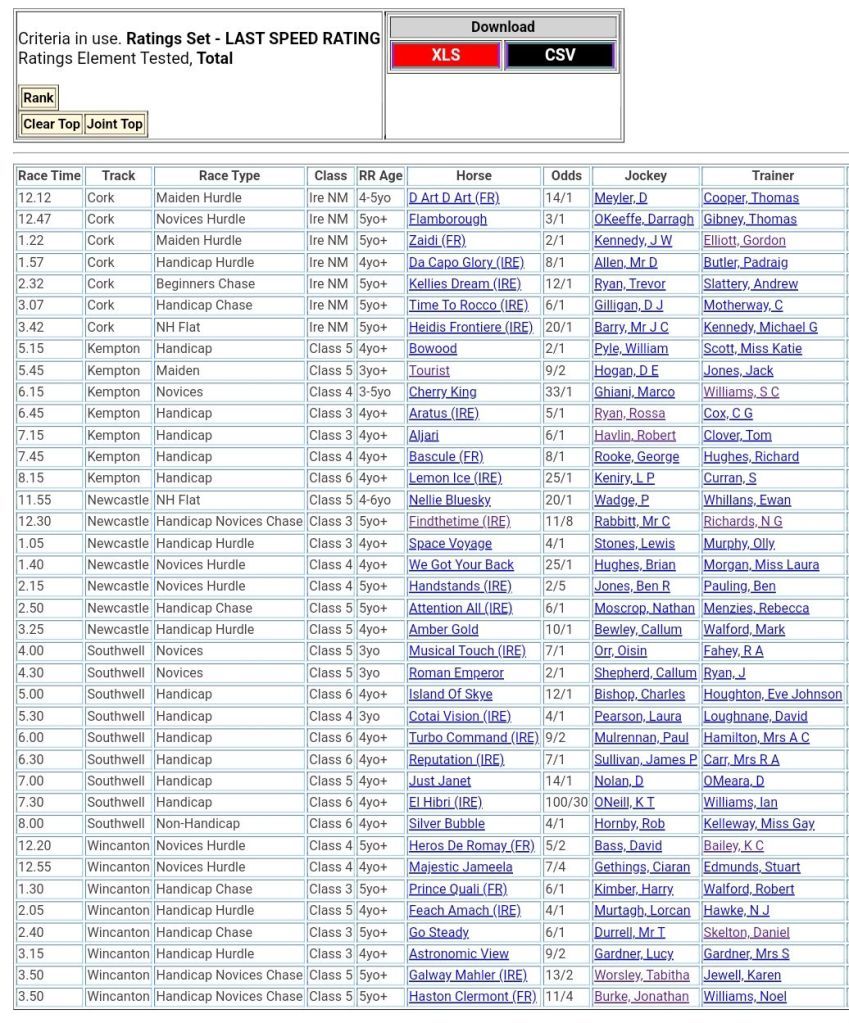 Top Speed Rated for Saturday’s meetings ⏱️⤵️