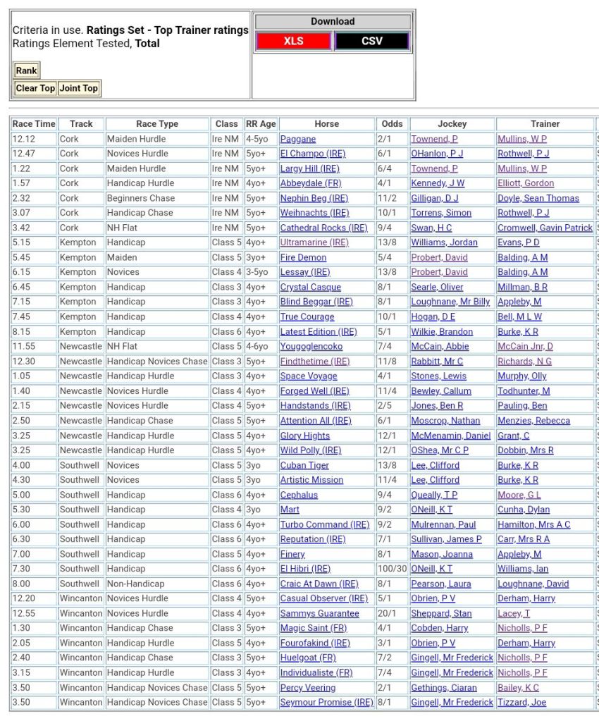 Top Ranked Trainers for Saturday’s races 💪⤵️