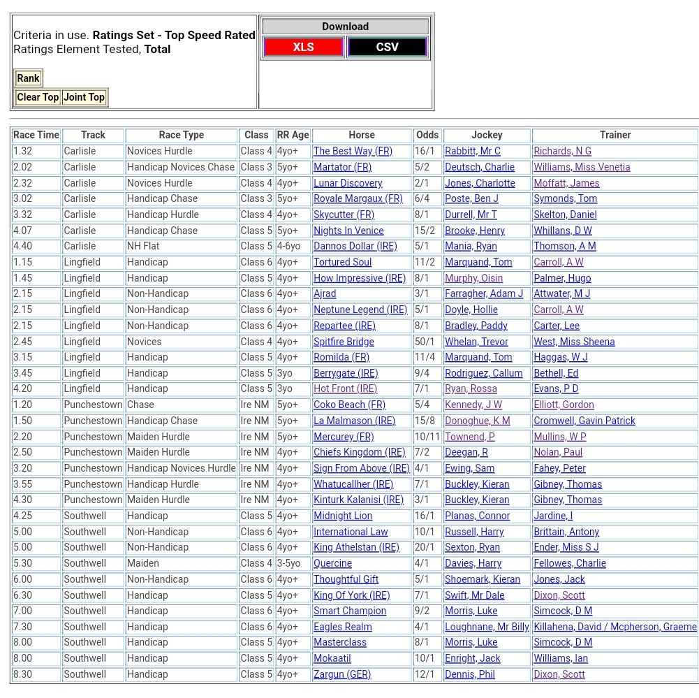 Top Ranked For Monday’s Meetings 🏇⤵️
