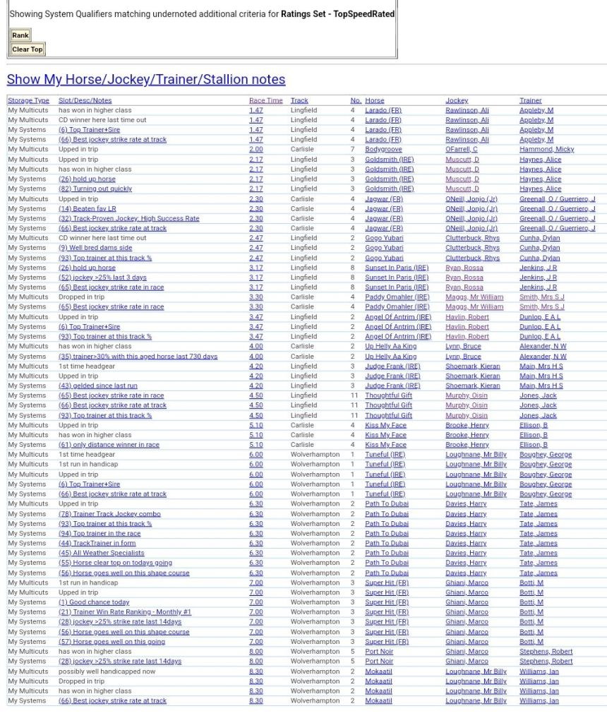 Clear Top Speed Rated+Notes For Monday’s Racing ⏱️⤵️