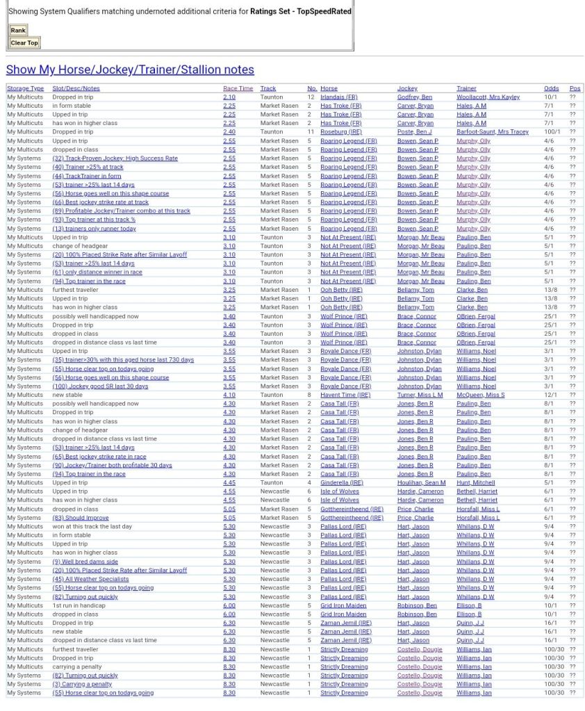 Top Speed Rated+Notes For Tuesday’s Racing ⏱️⤵️