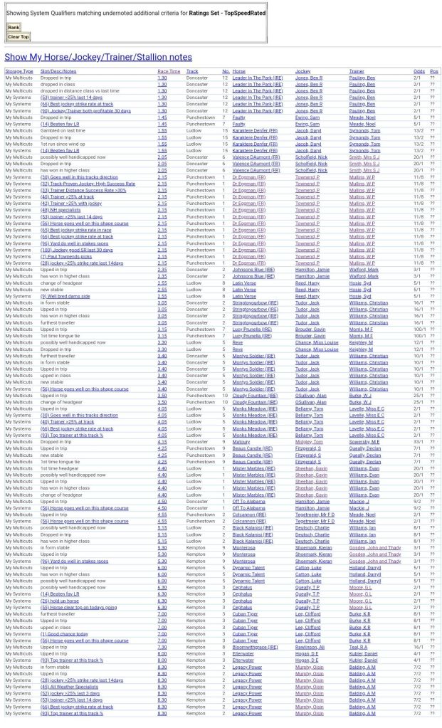Top Speed Rated+Notes For Wednesday’s Racing ⏱️⤵️