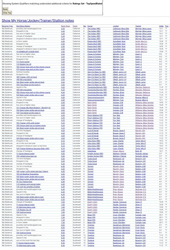 Clear Top Speed Rated+Notes For Tuesday’s Racing ⏱️⤵️