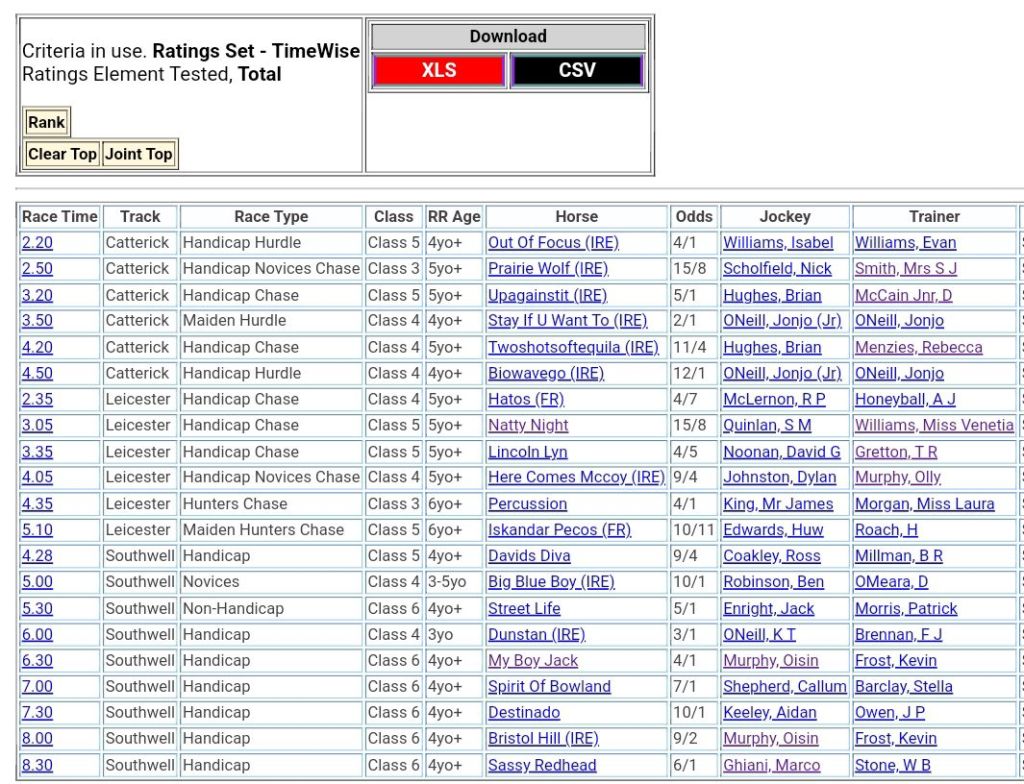 Top Two Ranked For Tuesday’s Racing 🏇⤵️