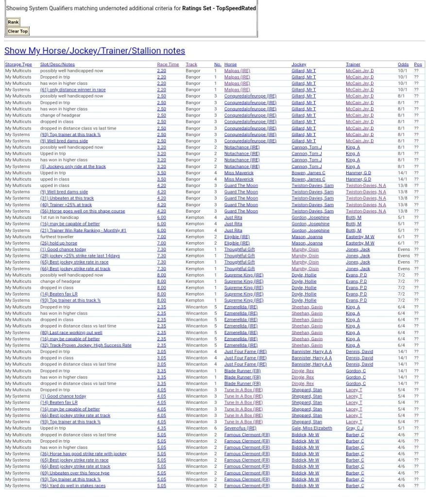 Clear Top Speed Rated+Notes For Wednesday’s Racing ⏱️⤵️