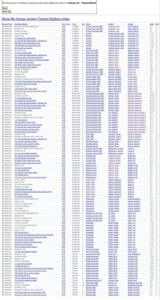 Clear Top Speed Rated+Notes For Tuesday’s Racing ⏱️⤵️