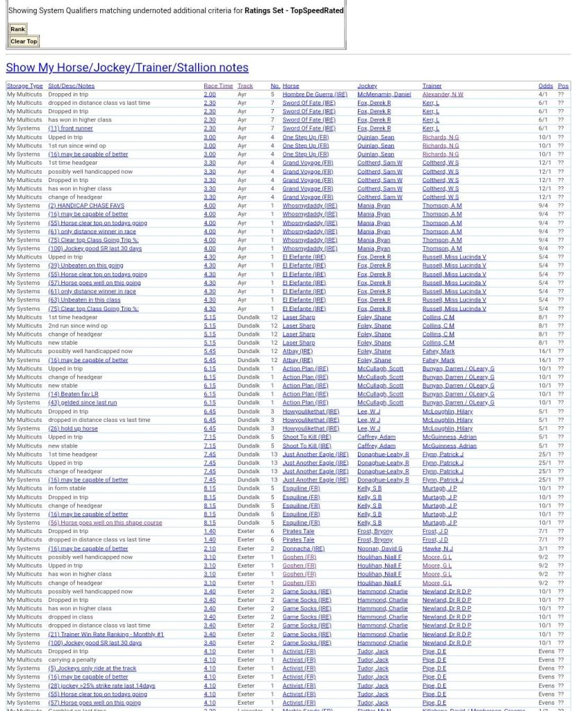 Clear Top Speed Rated+Notes For Friday’s Racing ⏱️⤵️
