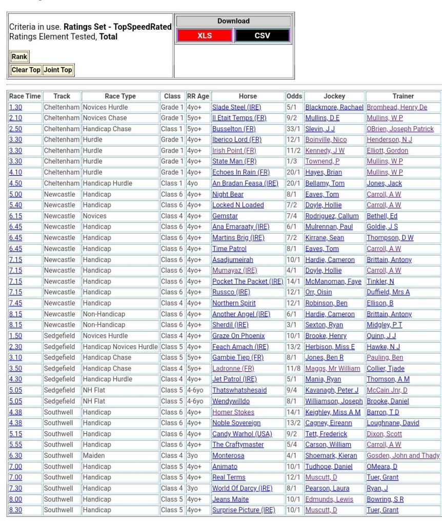 Top Two Ranked For Tuesday’s Racing 🏇⤵️