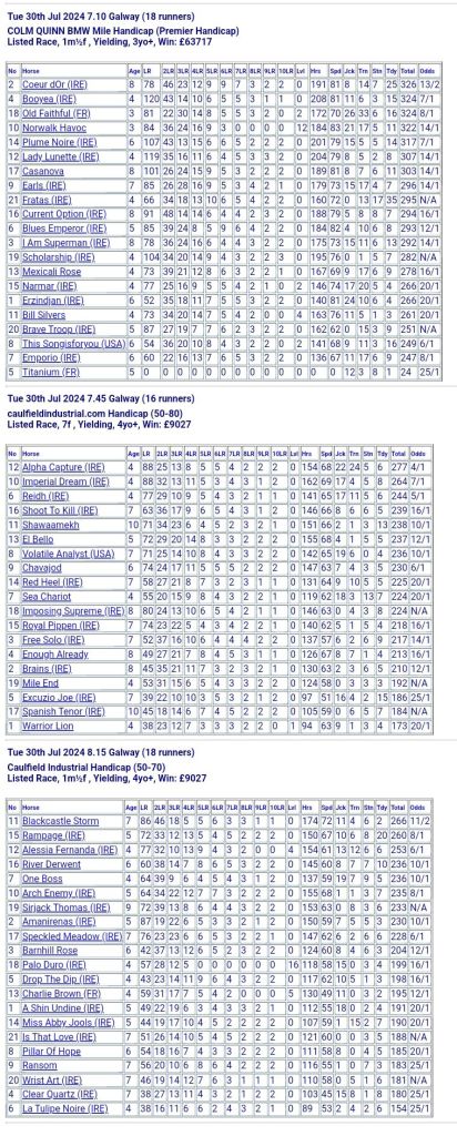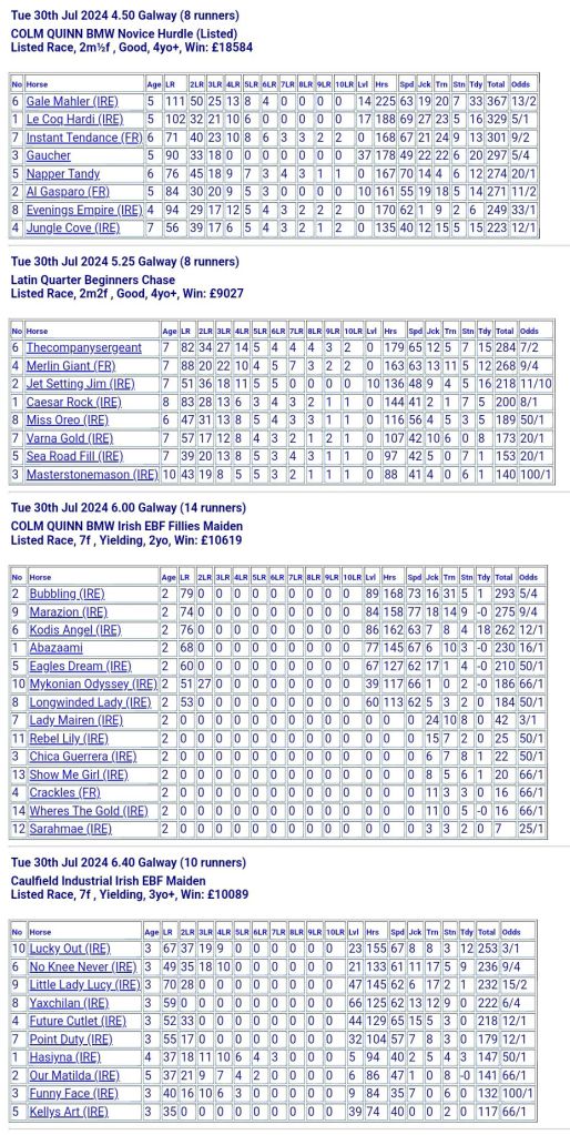 TimeWise Rankings For Day 2 Of The Galway Racing Festival đźŹ‡â¤µď¸Ź