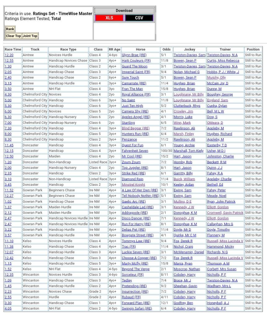 Top Two Ranked 🏇🏇 For Saturday’s Racing 👇⤵️