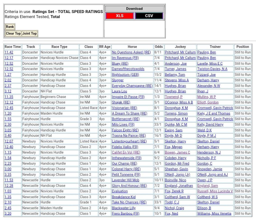 Top Two Ranked 🏇🏇 For Saturday’s Racing 👇
