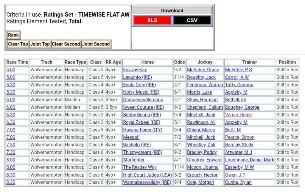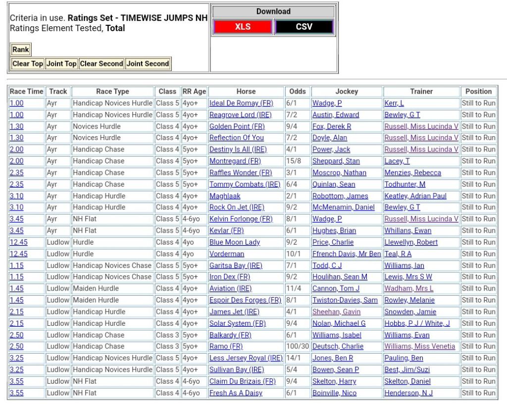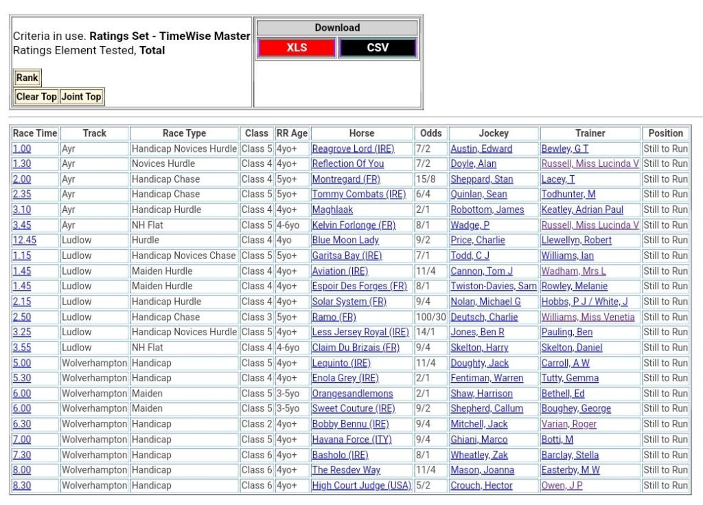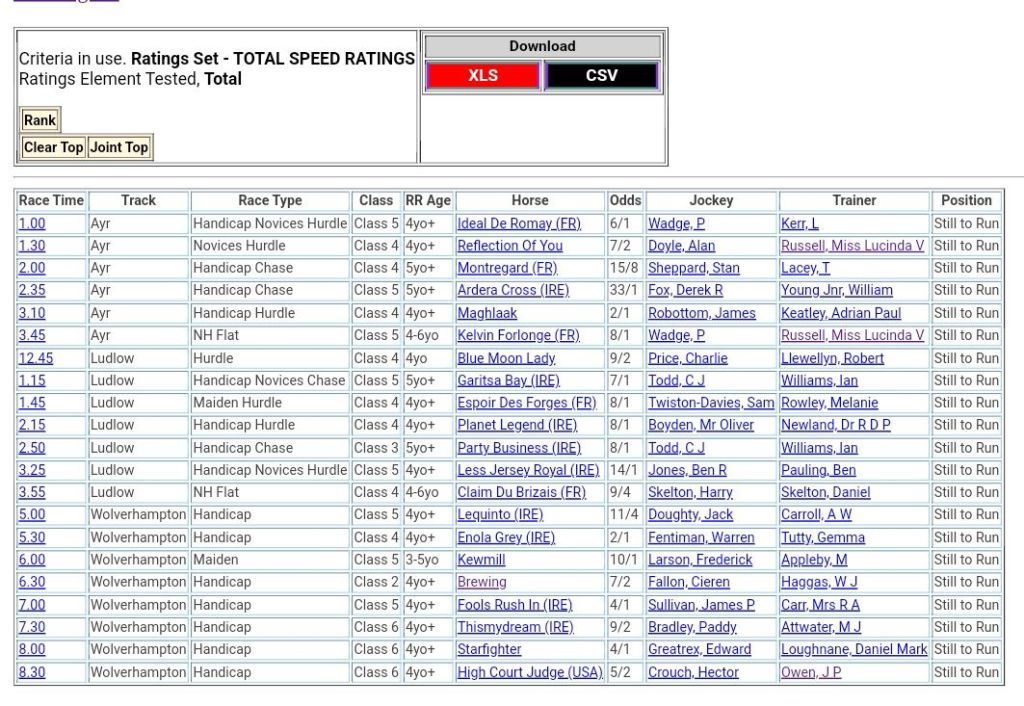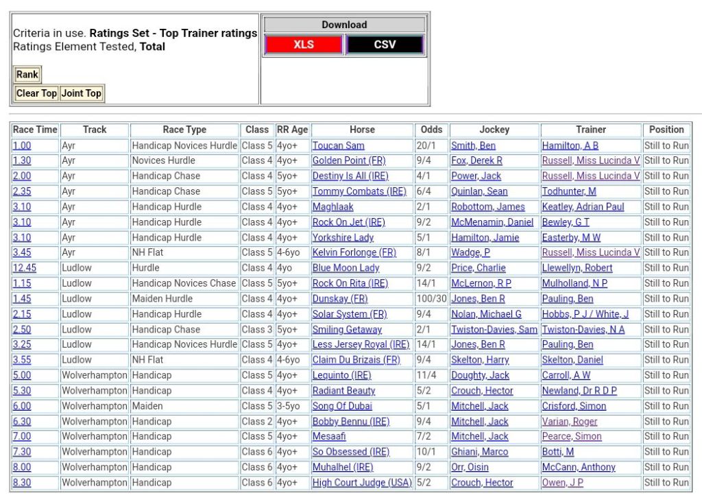 1. Thank you so much for providing such a great service. Your advice and top ranked horses analysis has proved invaluable to my trading in Horse Racing.