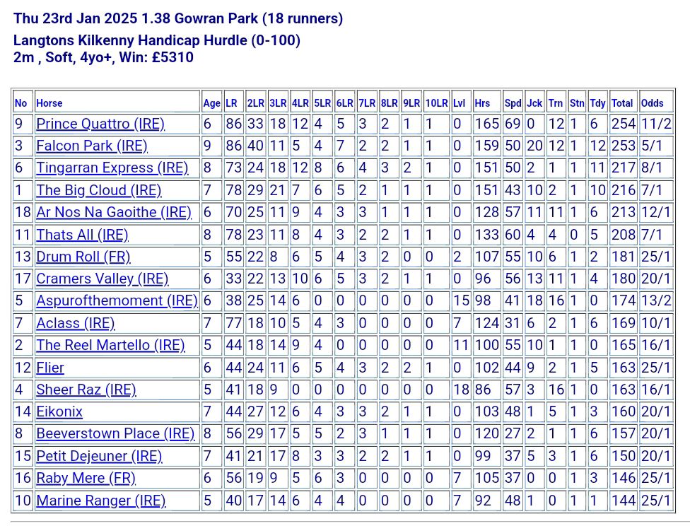 - Pros: Proven form with a recent win, the highest HRB rating (253.8), and a consistent front-runner, which suits the likely pace scenario. Soft ground form is a plus.