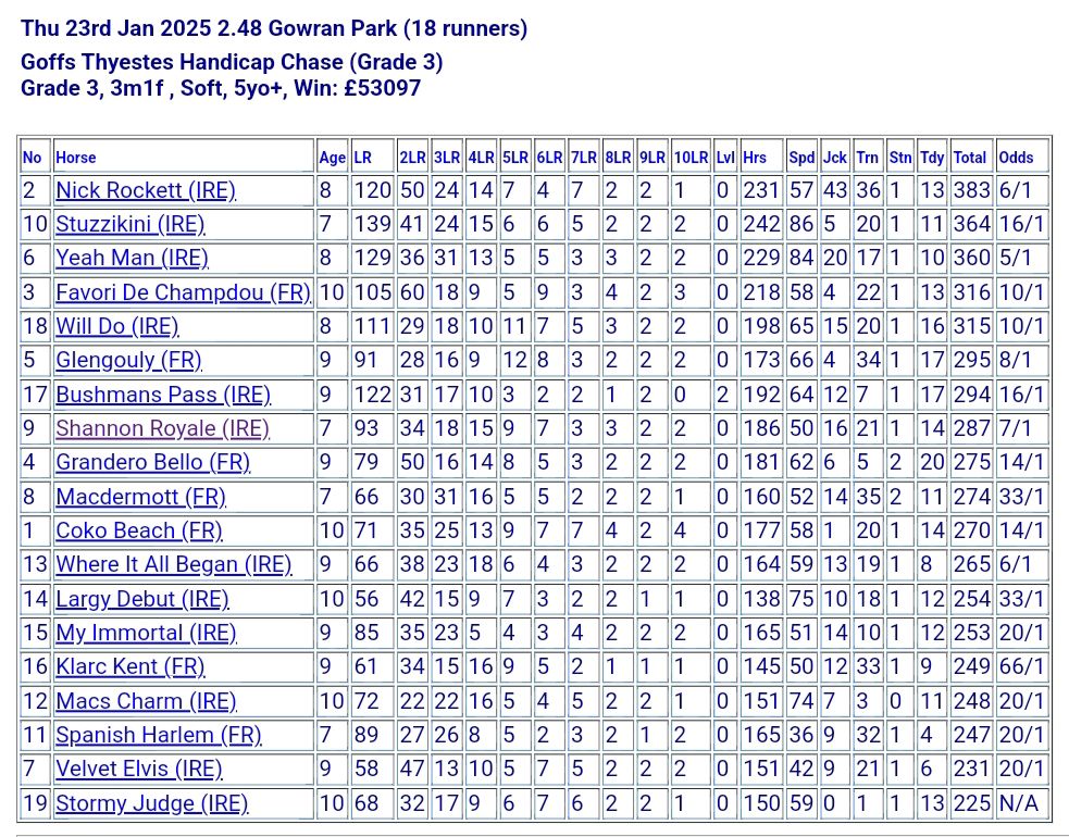 - Excellent recent form in similar conditions. Handles soft-heavy ground well.
