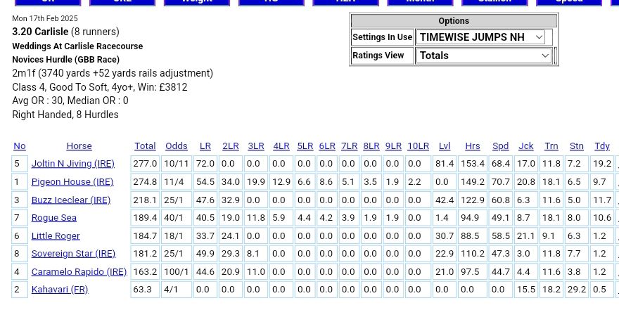 Joltin N Jiving deserves his position at the head of the market, but at more than twice the price, Pigeon House offers value that the market may be underestimating.