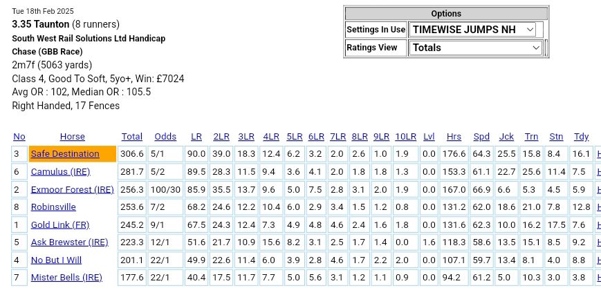 Strongest Contender: Safe Destination (5/1+) A progressive chaser who has thrived this season, winning three of his last four starts, including over course and distance last time out. He travelled smoothly, led before the last, and stayed on well. Soft ground holds no fears, and Nigel Twiston-Davies is in fine form. With a fair mark of 117, he looks primed for another big run.