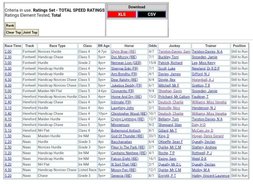 Top Two Ranked 🏇🏇 For Sunday’s Racing đź‘‡â¤µď¸Ź