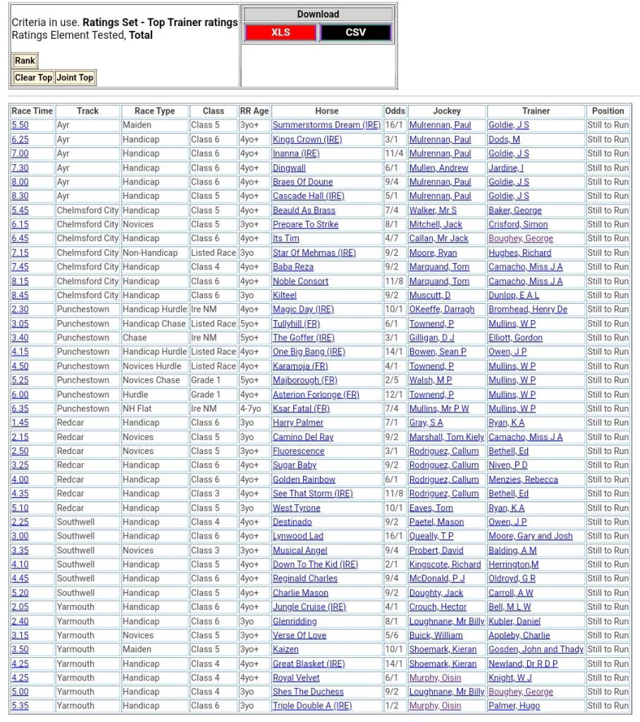 Top Two Ranked 🏇🏇 For Thursday’s Racing đź‘‡â¤µď¸Ź