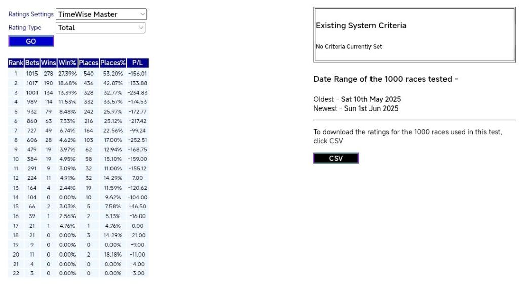 From the 10th May to 1st June there were 278 (27.39%) top ranked winners and 190 (18.68) 2nd ranked winners.That’s 468 (46.07%) of all winners were ranked in the top two 🏇⤵️👇